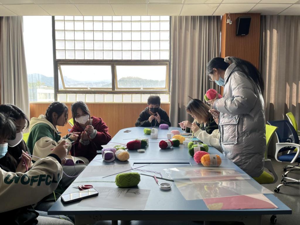 手工钩织课堂以“花香世界”为主题,师生们共同学习钩织花朵。课堂开始时,斯佳悦同学首先为大家介绍毛线钩织的基本针法,根据花朵的不同结构讲解不同针法。随后,为大家演示如何起针、如何进行钩针,进行手把手教学。师生们齐享这指尖上的芭蕾盛宴。课程结束后,有的同学将这朵充满爱的毛线花寄给母亲,有的同学送给自己的老师,为她们送去节日的专属定制祝福。