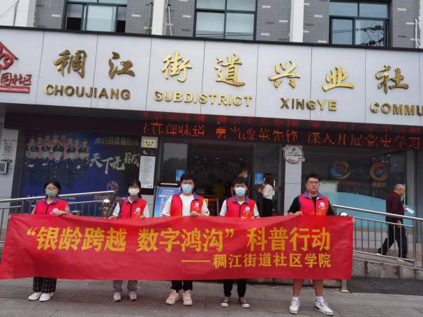 为解决“银发”群体的“科技困境”,发挥好大学教育的社会服务功能,5月31日上午,7790cnm必发集团联合稠江街道教育服务中心,以老年人“数智共享,跨越鸿沟”为目标,在兴业社区实施科普专项行动。