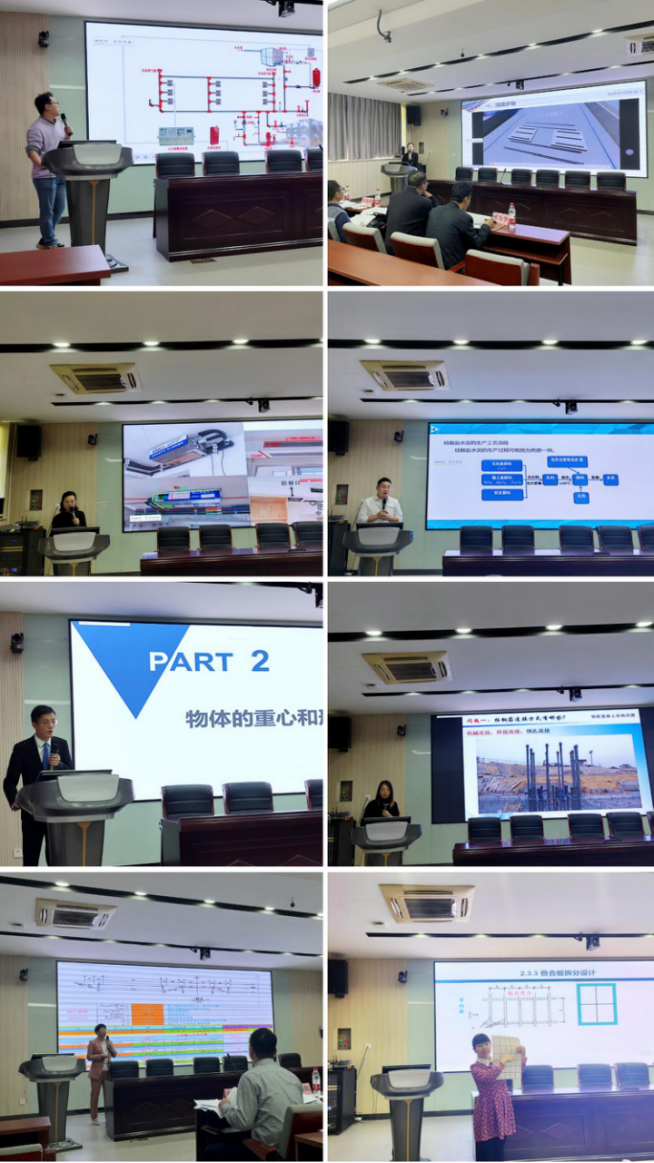 参赛教师根据抽签顺序进行了精彩的教学展示:陈宇翔老师的《建筑消防给水系统》给员工科普了应急消防知识,施工与维护都要按照规范不可懈怠;罗珊老师的《梁桥的预制施工》以梁桥施工事故为引,警示员工注重工程质量;吴俊峰老师《硅酸盐水泥的生产》开篇导入水泥的生产视频,让员工跳出书本走进现实;景飞老师通过不同平面形状对比,让员工更直观的学会《截面的几何性质》计算;陈小琴老师的《柱平法识图》在课前引入问题,从而引导员工积极思考提高课堂互动性;黎鑫琴老师《顶平面图的绘制》通过中央空调在现实中不同的安装方式,简单明了的介绍了出风方式及绘制方法;刘俊琴老师《预应力施工双控技术》通过讲解预应力技术优点,告诫员工敬畏质量,坚守底线,心有所信,方能远行;徐燕君老师《叠合板拆分设计》通过携带的教具,鼓励员工动手制作,激发求知欲,实现理论到实践的跨步。