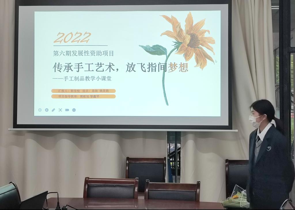 答辩会上,各项目负责人通过PPT宣讲、实物展示,通过活动意义、活动形式、活动内容、项目可行性、经费预算等模块,对自己拟开展的活动进行细致的分析。“有爱就是家——思成家园改造计划”的项目负责人是绿竹园5幢的楼长,他希望通过该项目的开展,发挥好公寓环境育人的作用;“传承手工艺术,放飞指间梦想——钩织制品教学小课堂”的项目负责人计划向优秀毕业生鲜花(钩织作品)、优秀钩织作品展等形式,扩大发展性资助项目的影响力。