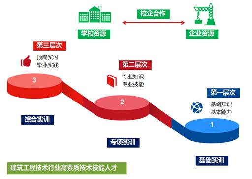 专业现有建筑工业化信息化联合实训基地在建,该项目为省级示范性实训基地。结合校内外优质实训条件,开展工学结合的三层次实训教学模式。