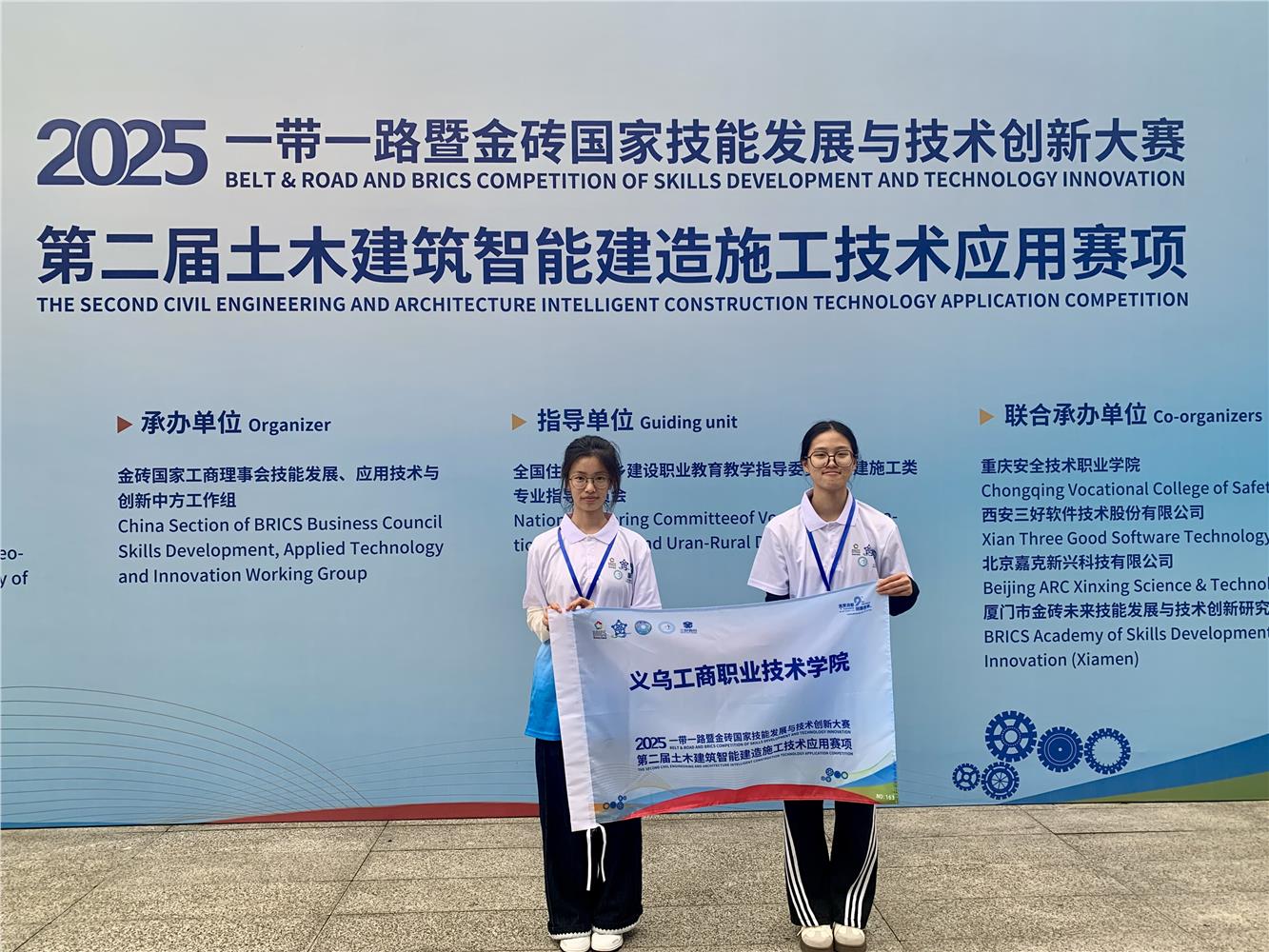 10月19日,由金砖国家工商理事会中方理事会、“一带一路”暨金砖国家技能发展国际联盟等单位主办的2025“一带一路”暨金砖国家技能发展与技术创新大赛(第二届土木建筑智能建造施工技术应用赛项),在重庆安全技术职业公司落下帷幕。本次比赛共有298支队伍参加,分为中职和高职本科国际两个赛道,其中高职共有134支队伍。参赛选手们经过激烈角逐,公司建工公司的朱伊一和詹祺欢团队获得了二等奖的好成绩,不负之前一起付出的共同努力。
