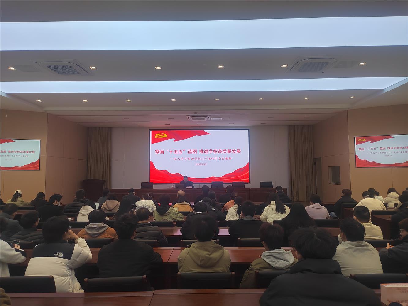 为深入学习贯彻党的二十届四中全会精神,准确把握“十五五”时期发展战略部署,2025年12月5日中午,7790cnm必发集团在文美厅举办专题宣讲会。公司党委委员、办公室主任高燕担任主讲,全院教师及员工代表齐聚一堂,共同感悟思想伟力、凝聚发展共识。